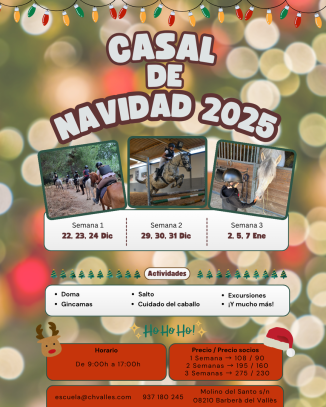 - Clases prácticas y teóricas de equitación. Desde la 09:00 de la mañana hasta las 17:00
