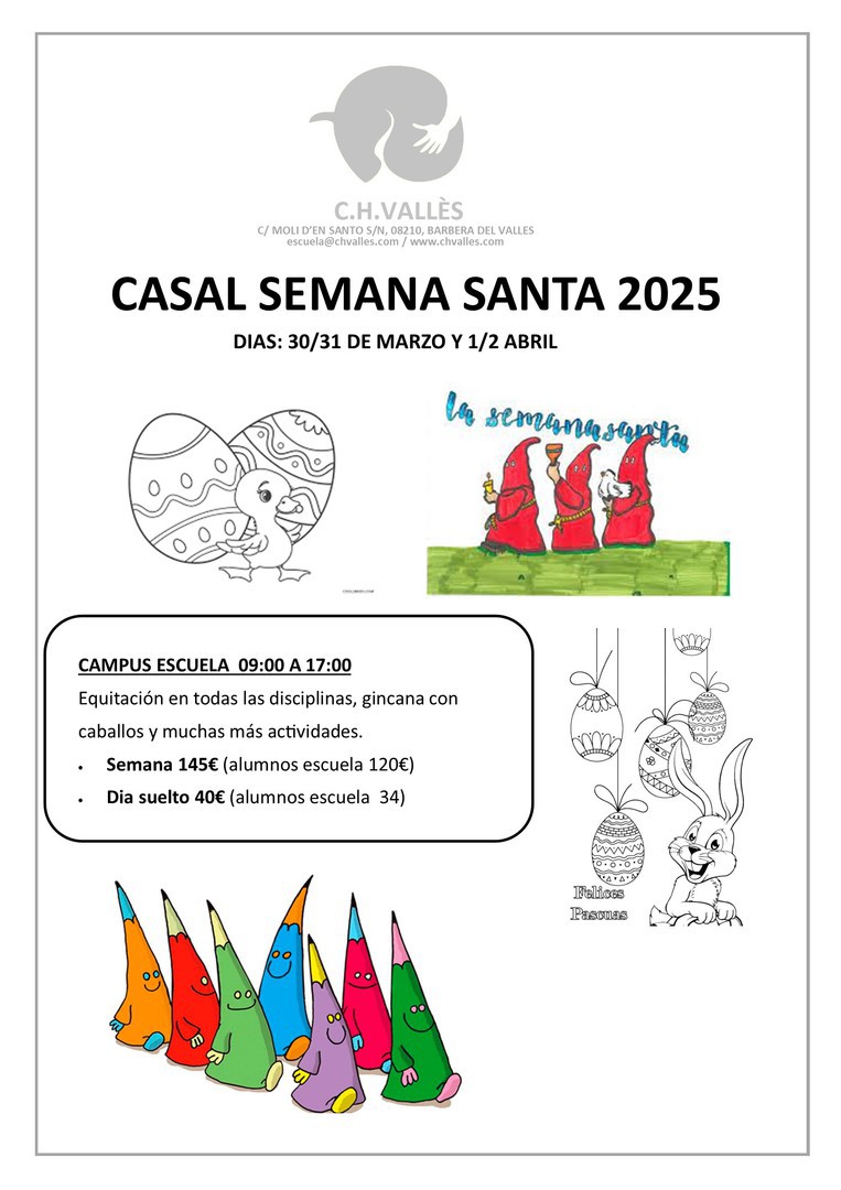 - Manejo y cuidado del caballos. de la tarde. Los participantes podrán entrar